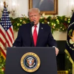 US President Donald Trump delivered a rare evening address from the White...