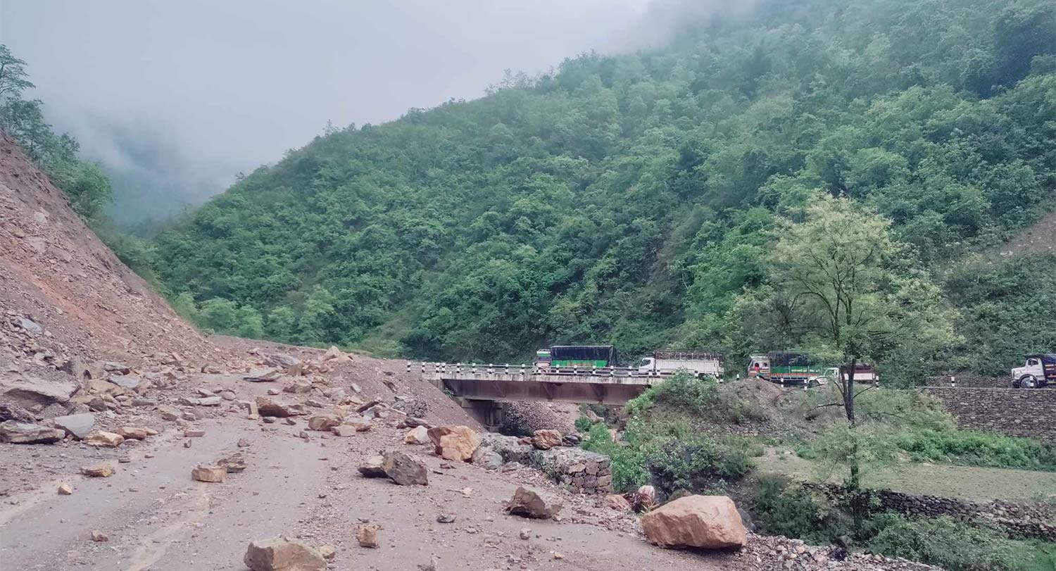Baglung – The Balewa–Ridi section of the Kaligandaki Corridor in Baglung district, completed six months ahead of schedule in June, has faced constant blockages from landslides since the onset of the monsoon. Frequent slides at Binamare (Jaimini Municipality–5) and Baralbhan (near Kaligandaki Rural Municipality, Gulmi) have left the road impassable for vehicles.