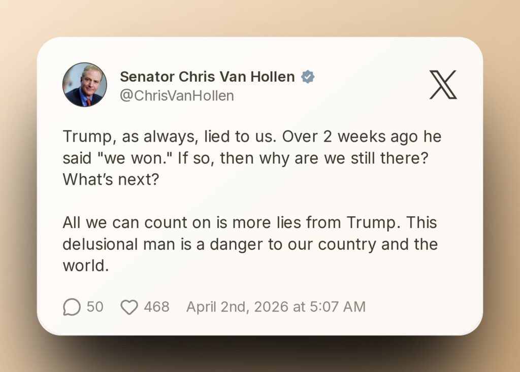 She cautioned against normalizing rhetoric that could escalate instability.Meanwhile, Senator Chris Van Hollen accused the president of misleading the public, pointing to contradictions in earlier claims of victory. “If we already won, why are we still there?” he questioned, highlighting inconsistencies that could undermine both domestic confidence and international credibility.