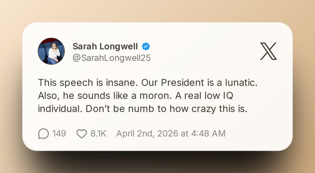 He warned that the absence of a clear plan raises serious concerns about the direction of U.S. foreign policy.Political strategist Sarah Longwell offered one of the harshest critiques, labeling the speech “insane” and expressing deep concern over Trump’s judgment during a time of international crisis.